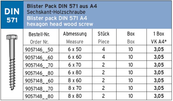 BOX 571 A4 Блистер. Нержавеющий шуруп сантехнический DIN 571