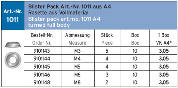 BOX 1011 A4 Блистер. Нержавеющая шайба - розетка